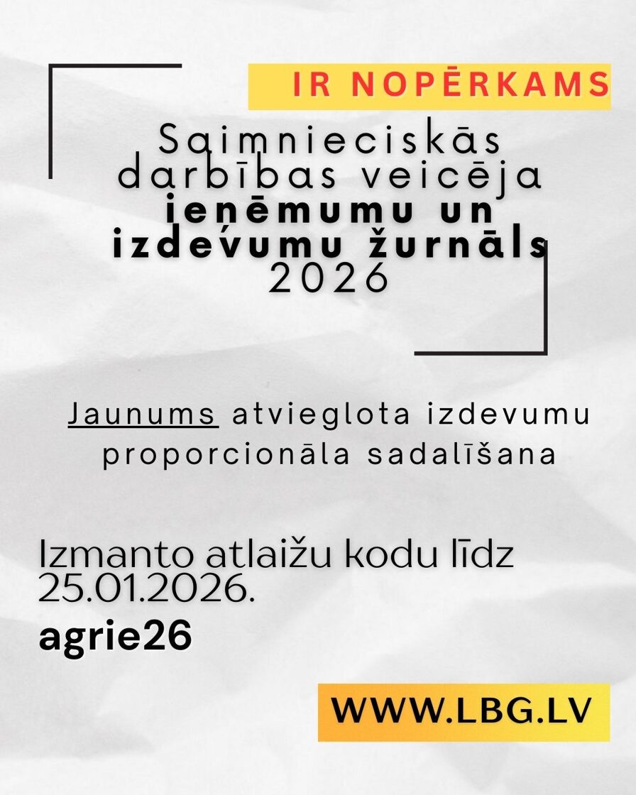 Piedāvājam saimnieciskās darbības veicēja ieņēmumu un izdevumu žurnālu 2022. gadam!